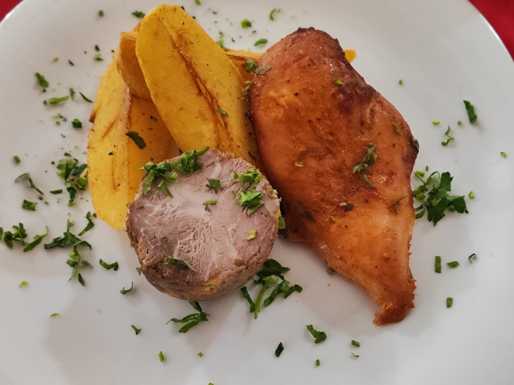 (Piept de pui dezosat / pulpa de pui,, cartofi prajiti) -